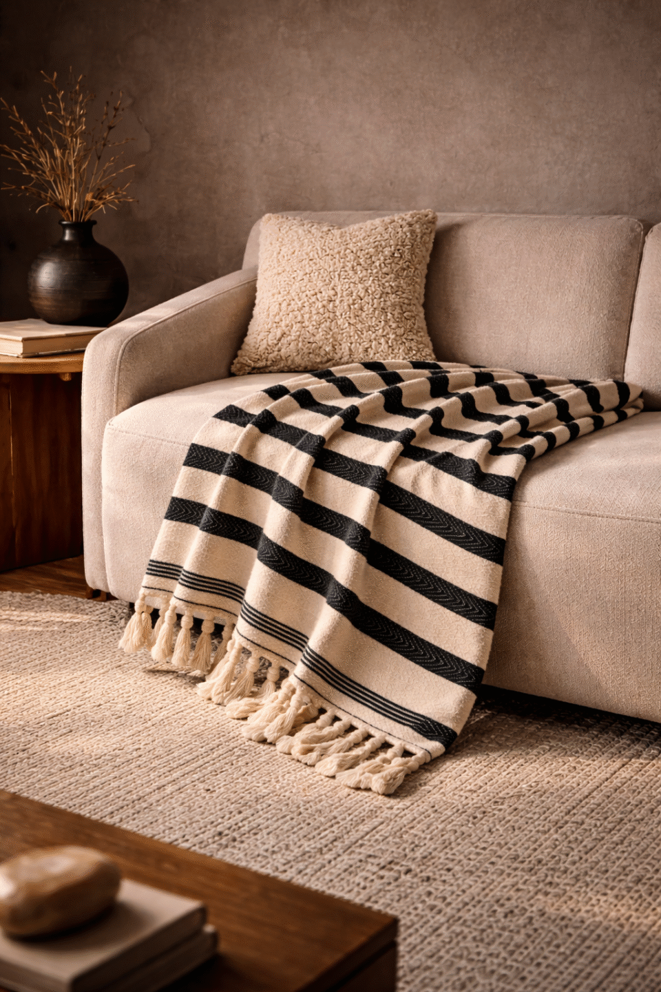 Minimal çizgiler, doğal dokuma ve zamansız kontrast.Siena koltuk şalı, yaşam alanlarına modern ama sıcak bir karakter kazandırır.