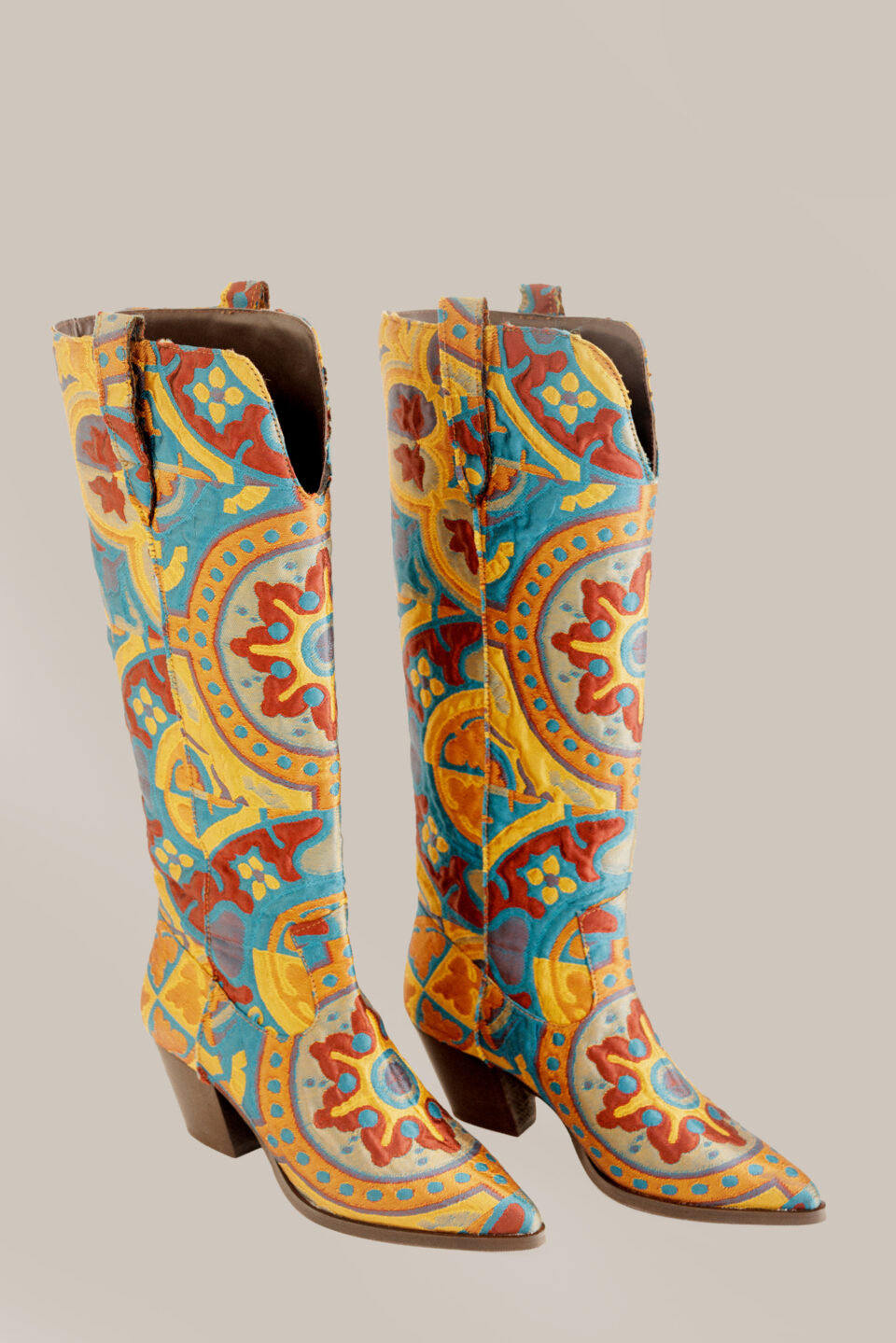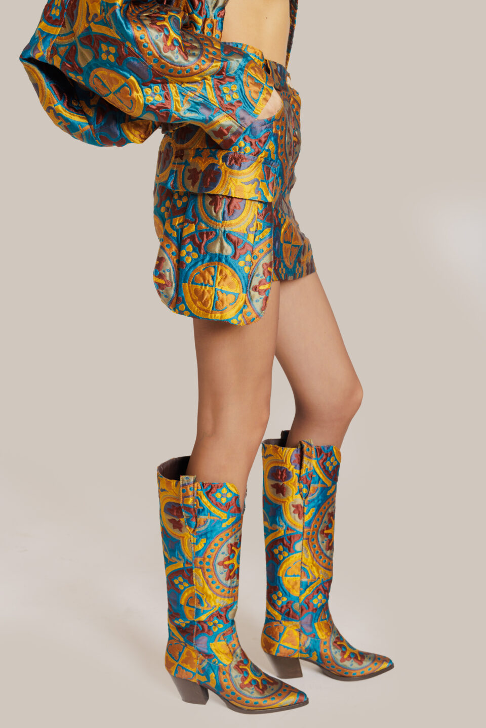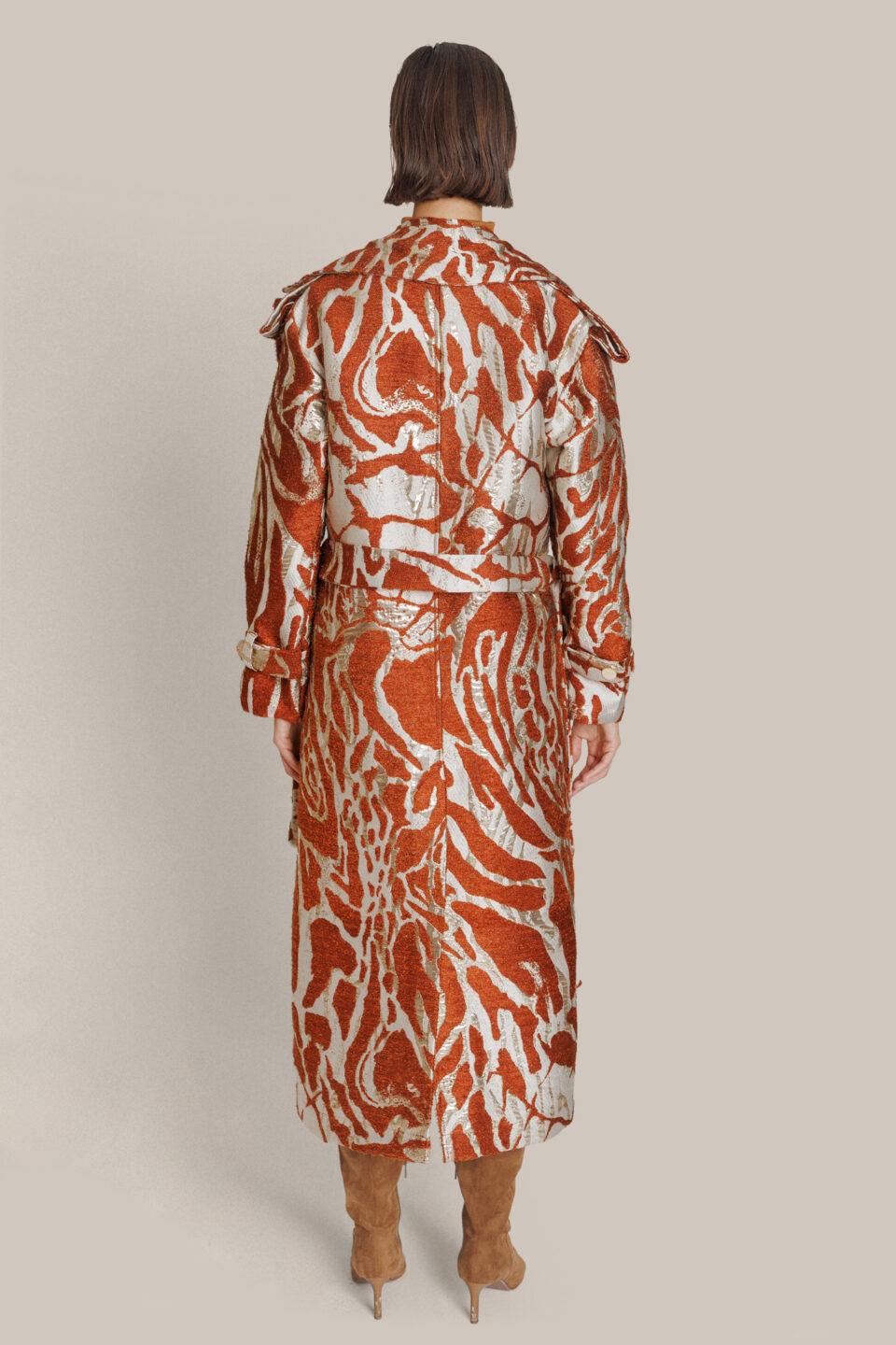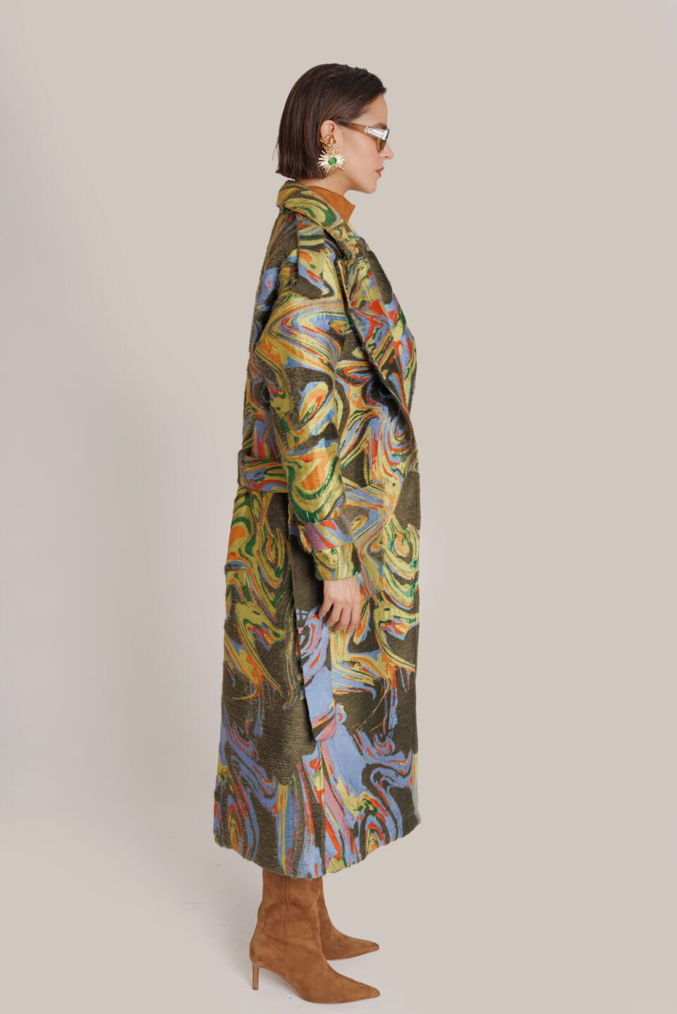 Özel tasarım jakar dokuma kumaştan, Eclectic atölyesinde üretilmiştir.