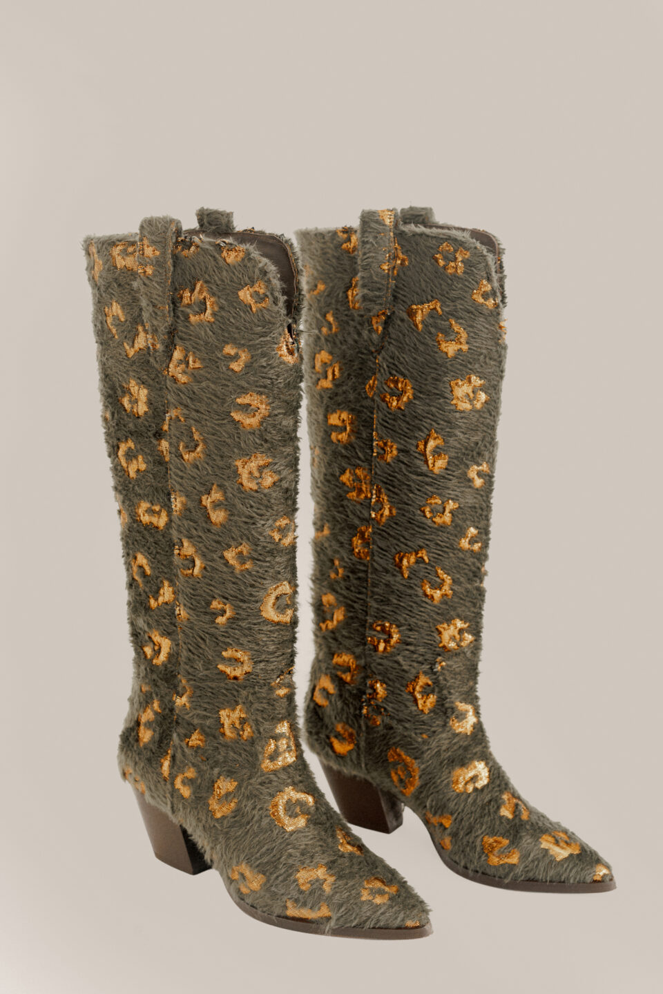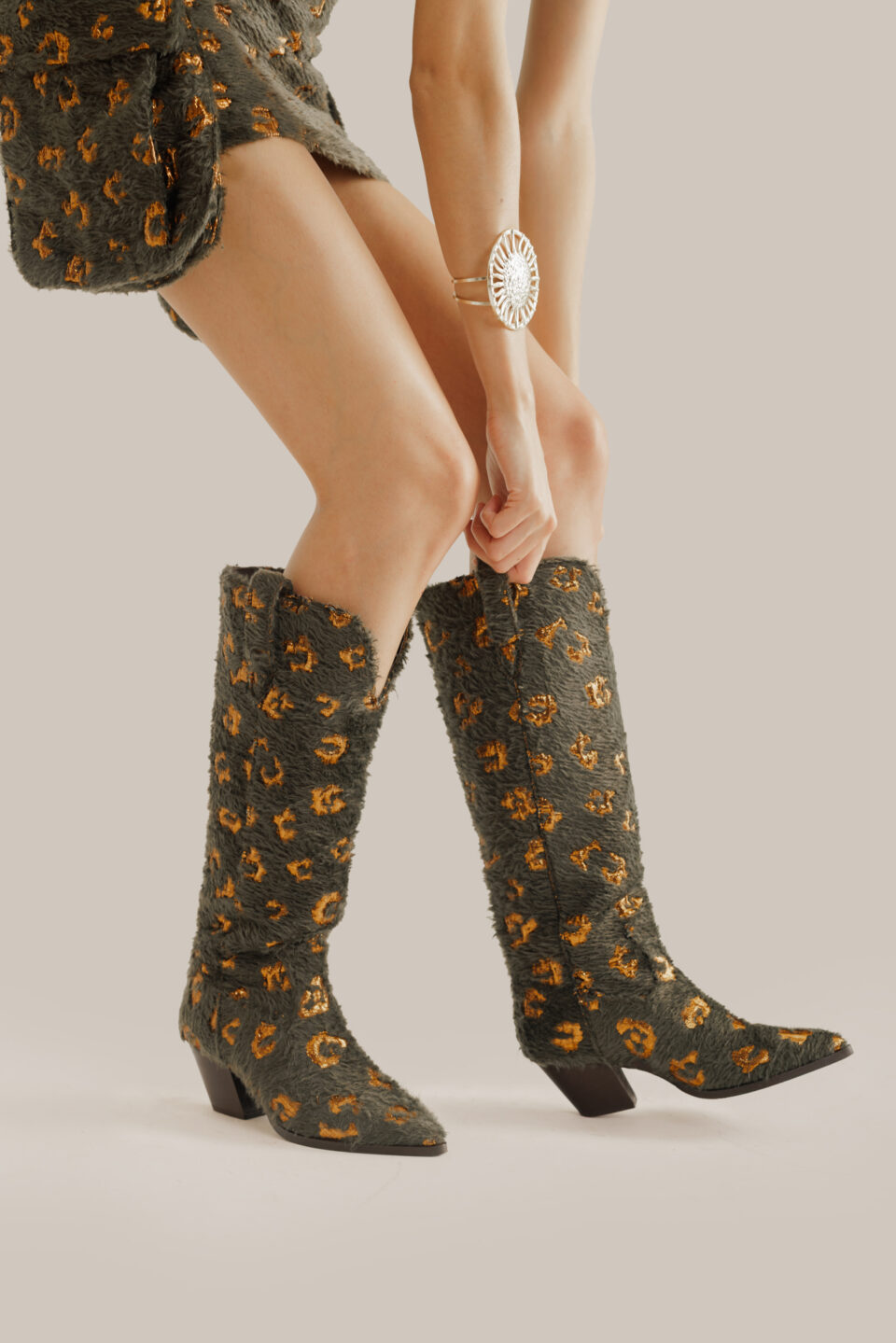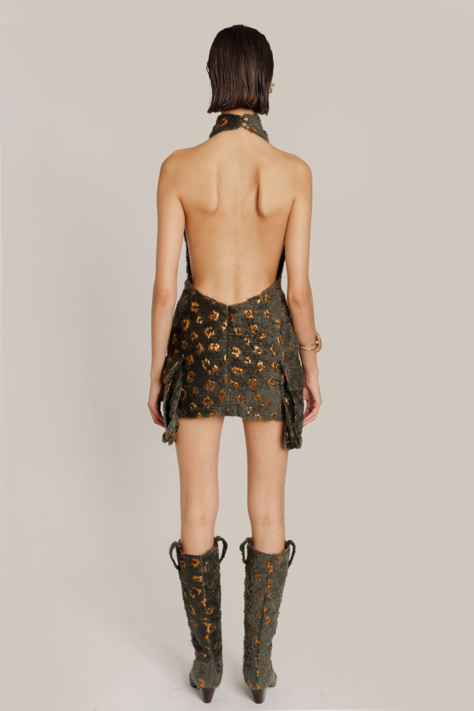 Gold efekt işlemeli özel dokulu kumaştan, Eclectic atölyesinde üretilmiştir.