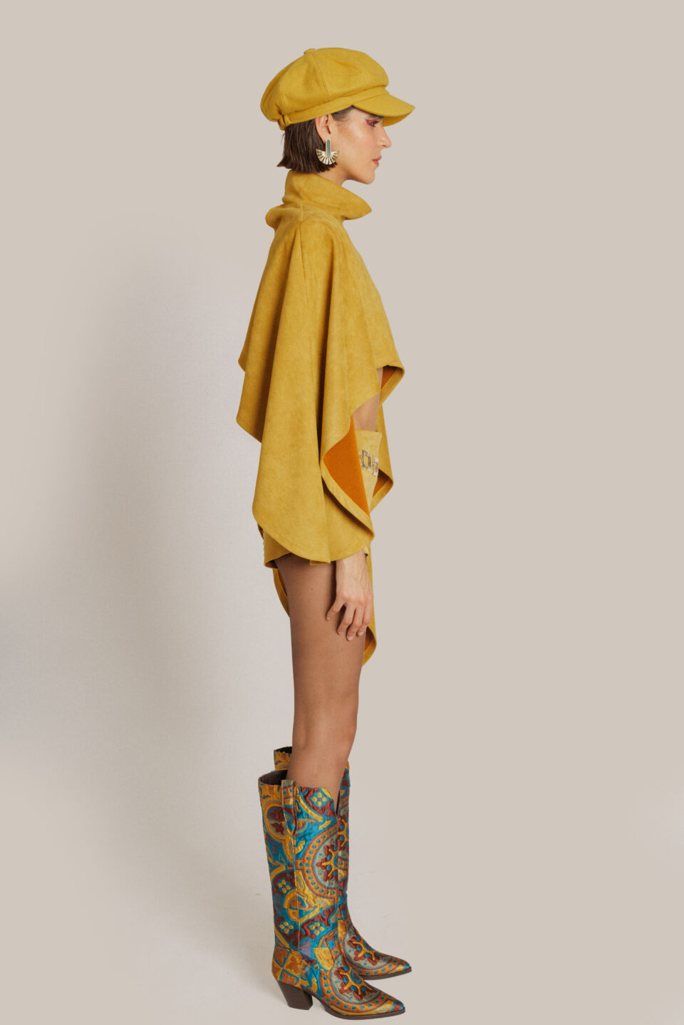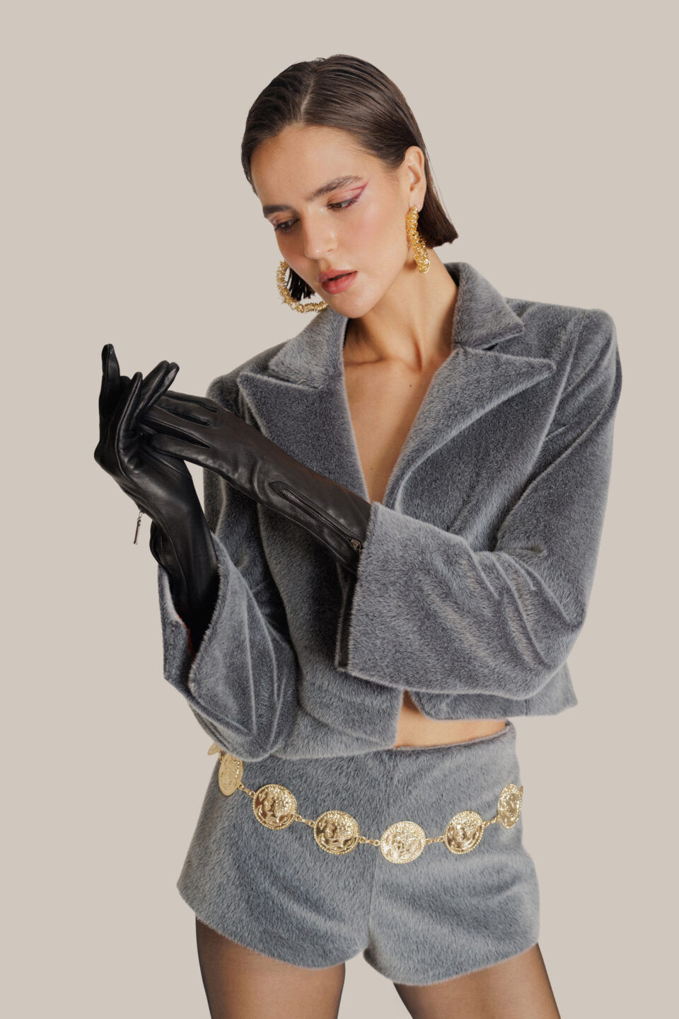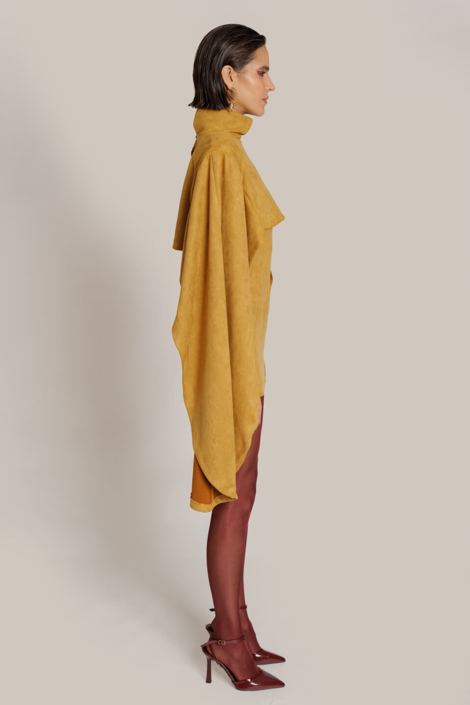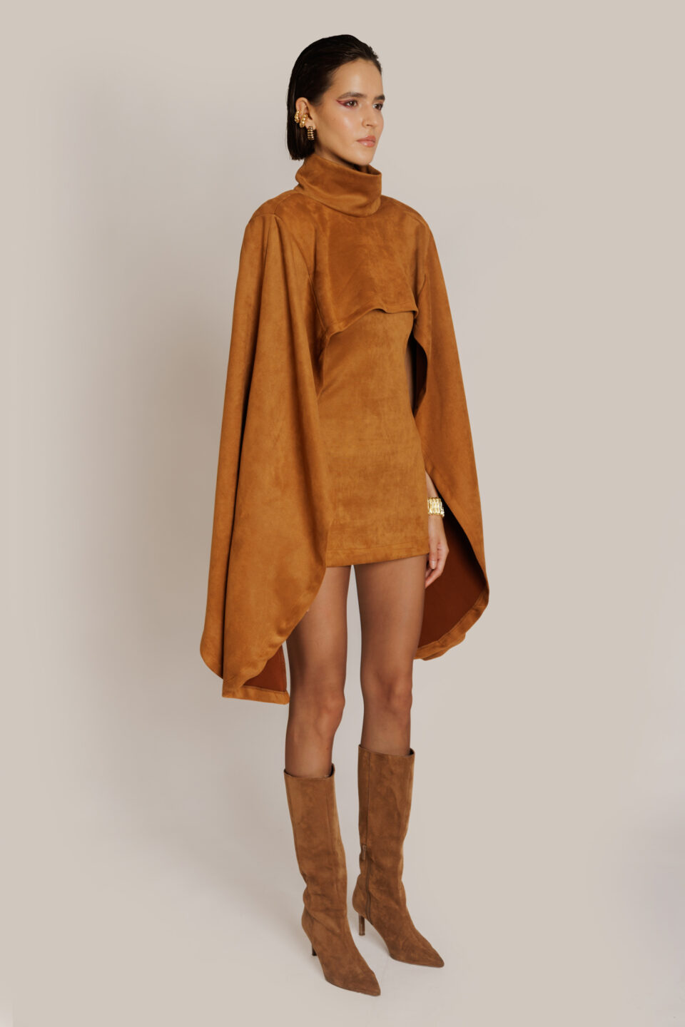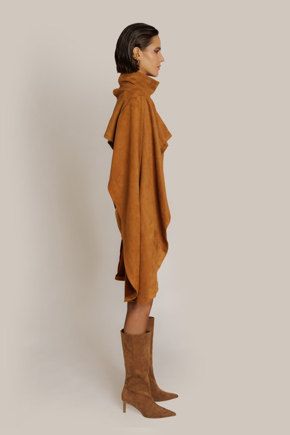 Peluş ve nubuk kumaş kullanılarak özel olarak Eclectic atölyesinde üretilmiştir. Bedenli esnek beden aralıklarına sahip bir modeldir.