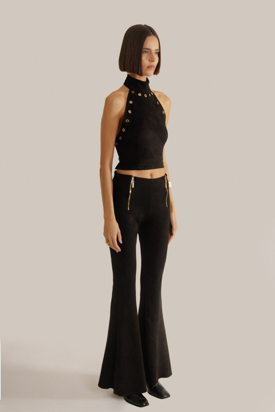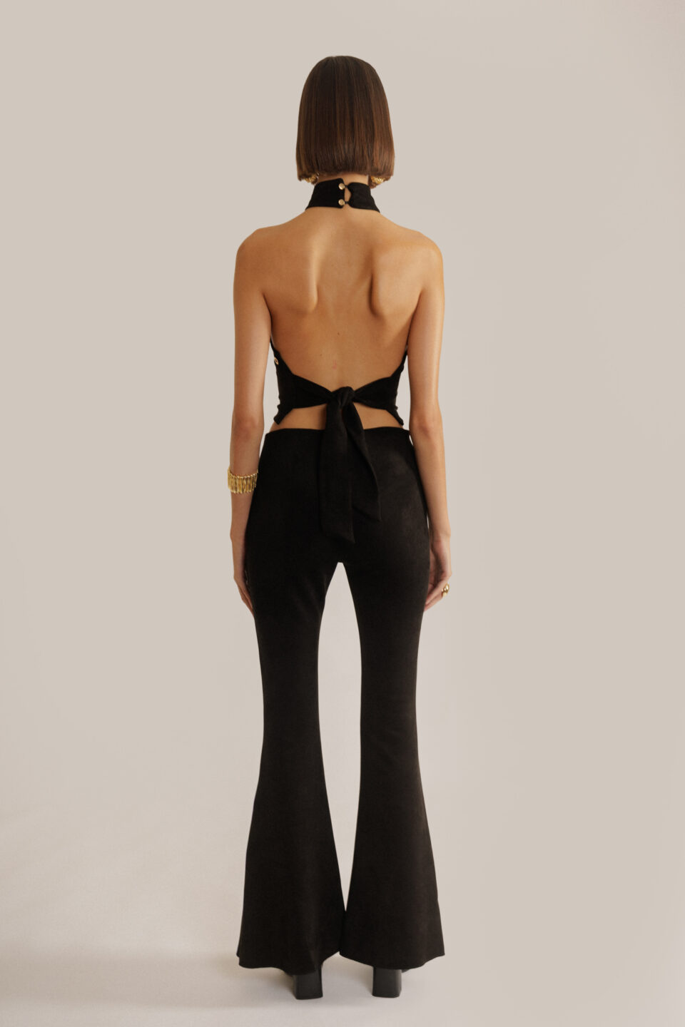 Fitilli kadife kumaştan özel olarak Eclectic atölyesinde üretilmiştir. Üst, arkadan bağcıklıdır.