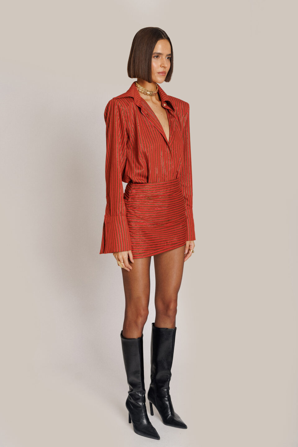 Bambu ip kumaştan özel olarak Eclectic atölyesinde üretilmiştir. Üst ve etek takım olarak satılmaktadır.