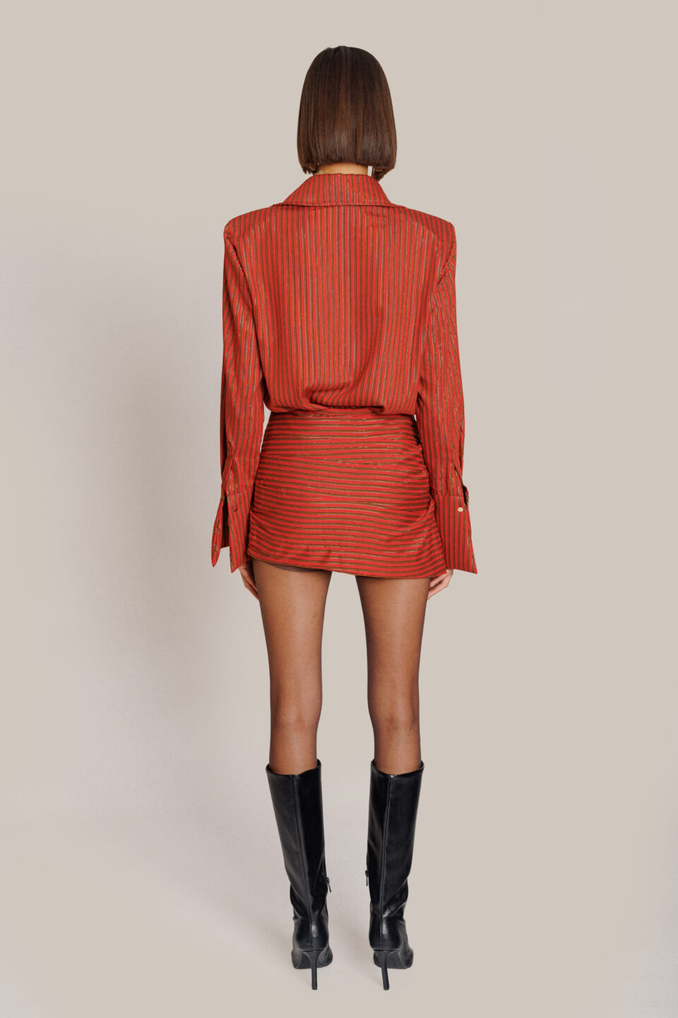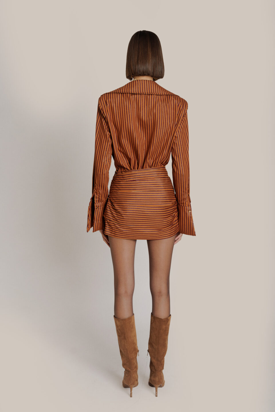 Parlak çizgi dokulu kumaştan özel olarak Eclectic atölyesinde üretilmiştir.Takım olarak satılmaktadır.