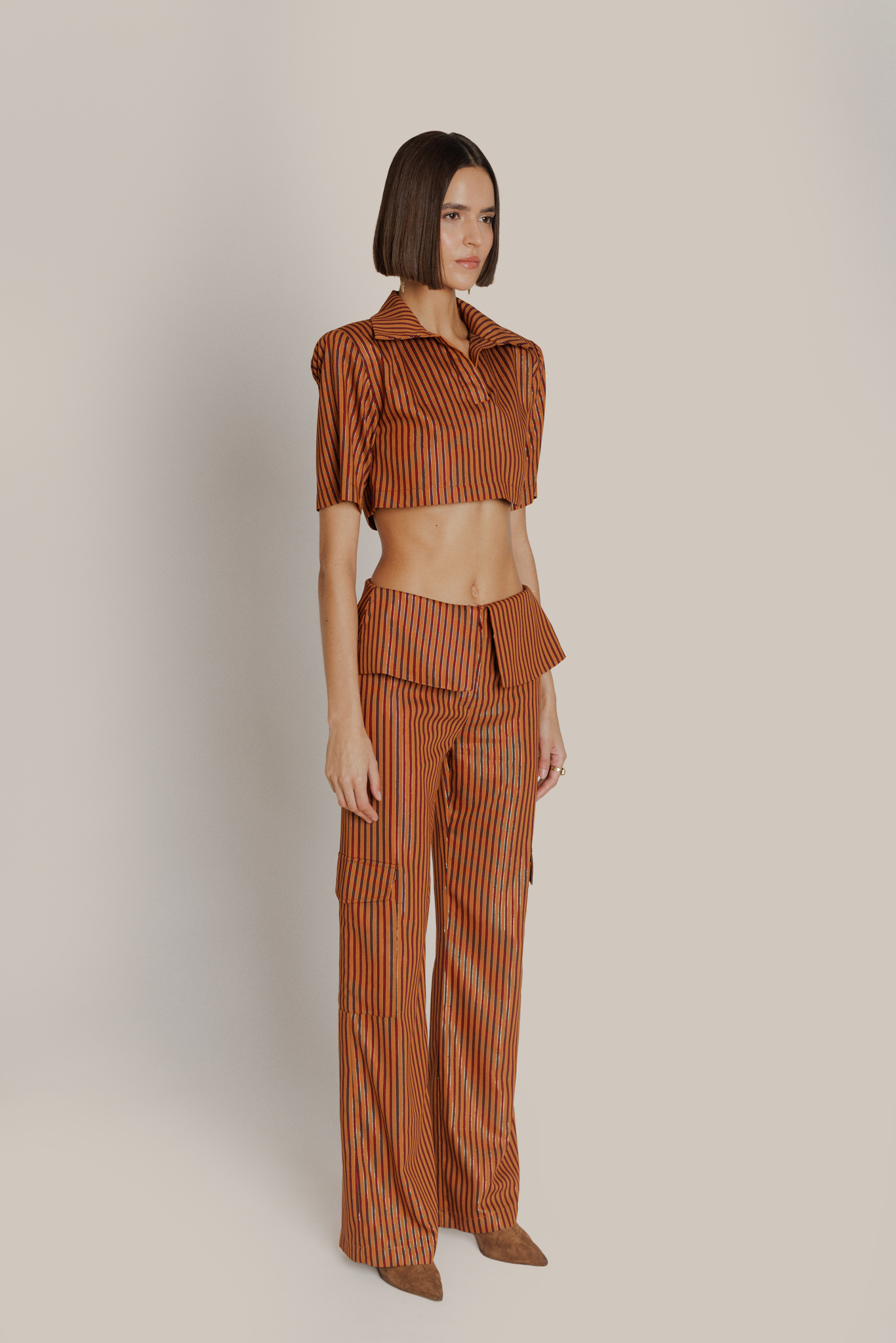 -Üçgen Yaka Detaylı Üst. -Kargo Cep Detaylı Pantolondur.