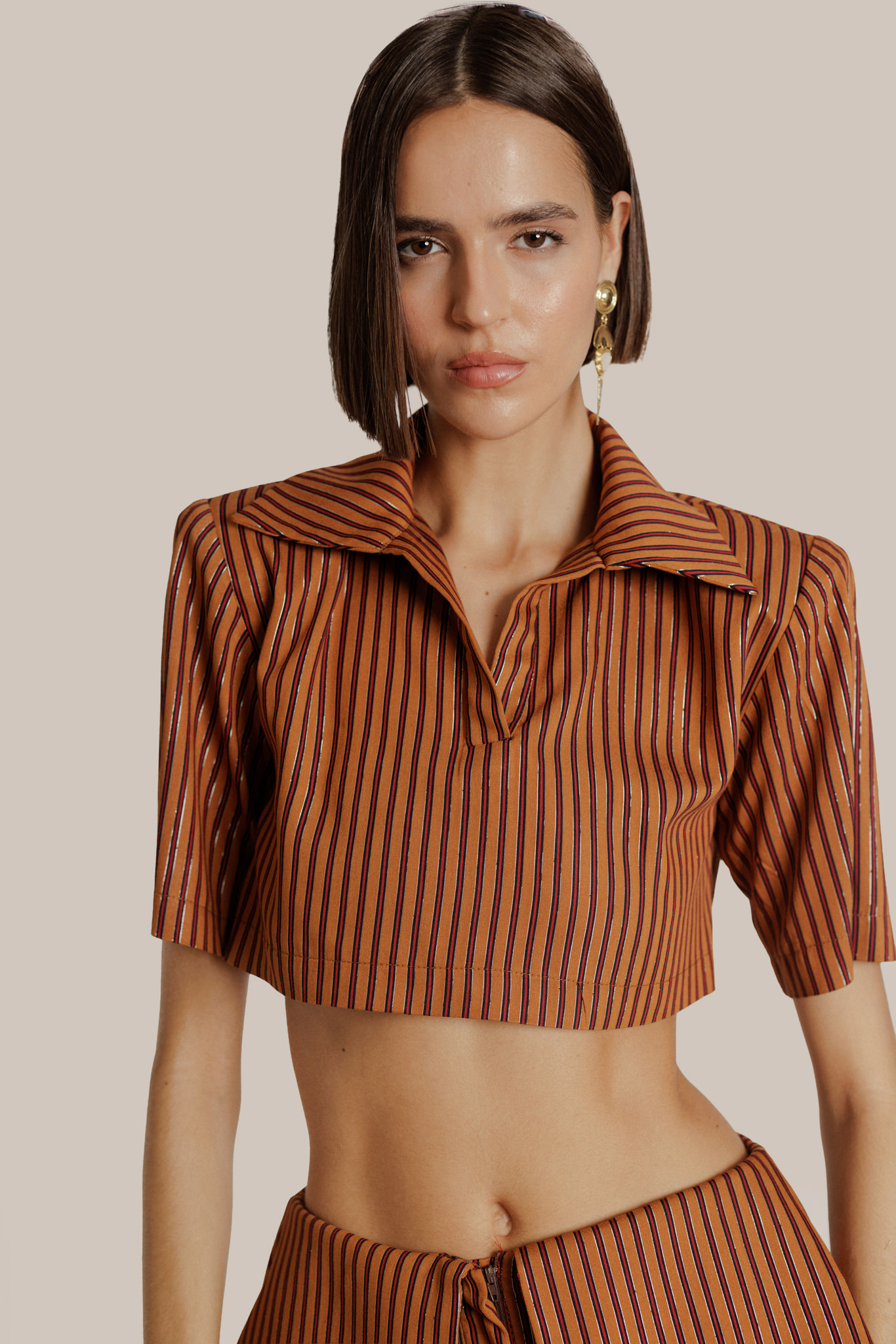 Üst: Cropped kısa form Vatkalı omuz Kısa kol