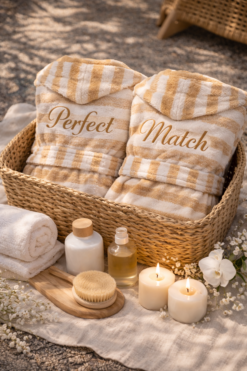 Özel tasarım bornoz, romantik ve sofistike bir stil sunarken uzun ömürlü kullanım için yüksek kalite standartlarında üretilmiştir. Zamansız tasarımı sayesinde yıl boyunca keyifle kullanılabilir.