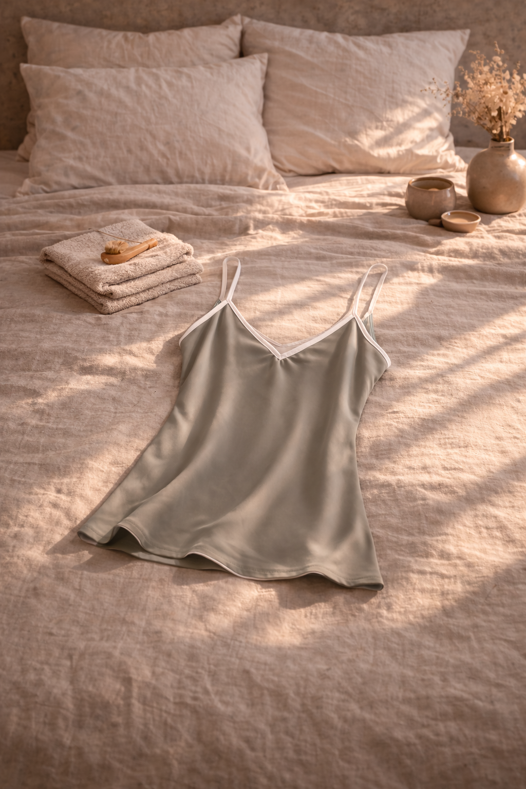 Mira Modal Slip Kimono Set, minimal tasarımı ve lüks dokusuyla ev stilini bir üst seviyeye taşır. Yüksek kaliteli modal kumaşı sayesinde cilt üzerinde serin, pürüzsüz ve nefes alan bir his bırakır. Hafif yapısı sayesinde vücuda ağırlık yapmaz; akışkan formu doğal ve feminen bir duruş sağlar.